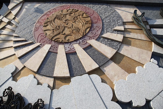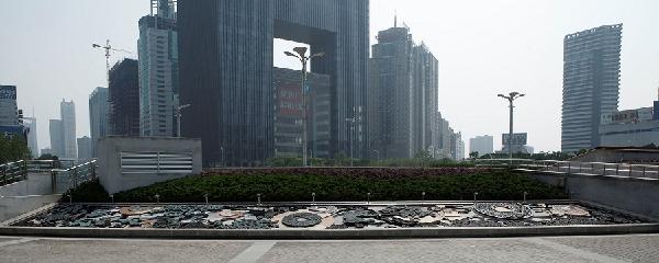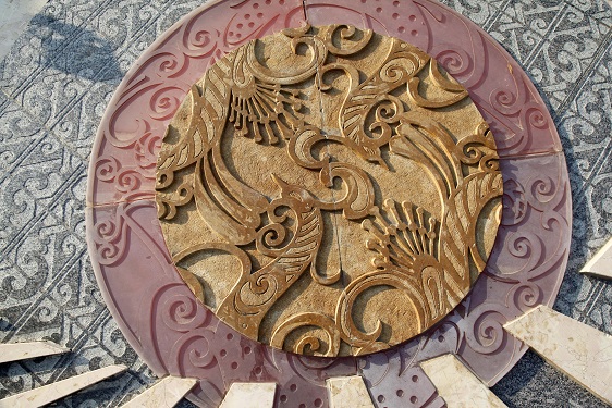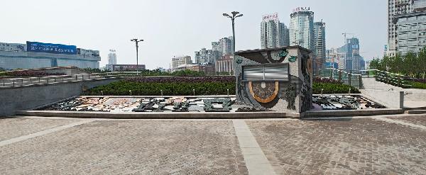 洪山广场以下沉式火凤凰图案广场为中心,在中心环形平台外围设计制作有三组、十幅大型浮雕壁画,分别以《楚史》、《楚风》、《楚韵》为题,深度刻画出“楚文化三部曲”。
